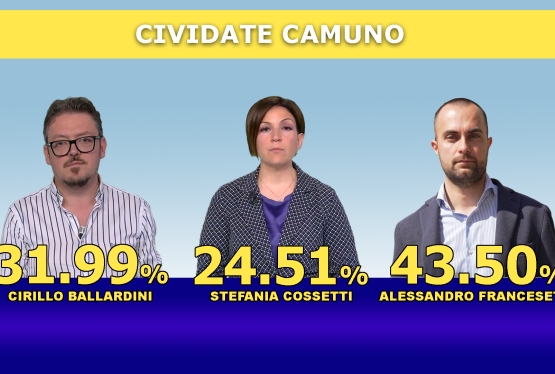 Alessandro Francesetti è il nuovo sindaco di Cividate Camuno. E' stato eletto con 733 voti (43,50%). Ha battuto il sindaco uscente Cirillo Ballardini (539 voti, 31,99%) e Stefania Cossetti (413 voti, 24,51%).