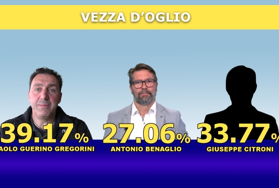 A Vezza d'Oglio è stato eletto Paolo Gregorini che batte Giuseppe Citroni e Antonio Benaglio. 385 i voti di Gregorini (39,17), 332 quelli di Citroni (33,77%) e 266 Benaglio (27,06%).