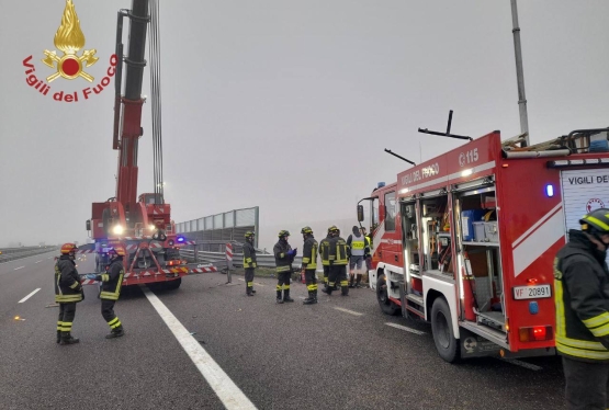 Numerose squadre dei Vigili del Fuoco sono intervenute questa mattina intorno alle 6:30 sull’autostrada A35 Brebemi, in direzione Brescia, a seguito di un grave incidente stradale avvenuto tra i caselli di Calcio e Chiari Ovest. Un mezzo pesante ha colpito un’auto che in quel momento si trovava ferma in una piazzola di sosta, causando la morte del conducente. Ulteriori notizie nei nostri telegiornali delle 12:15 e 18:50